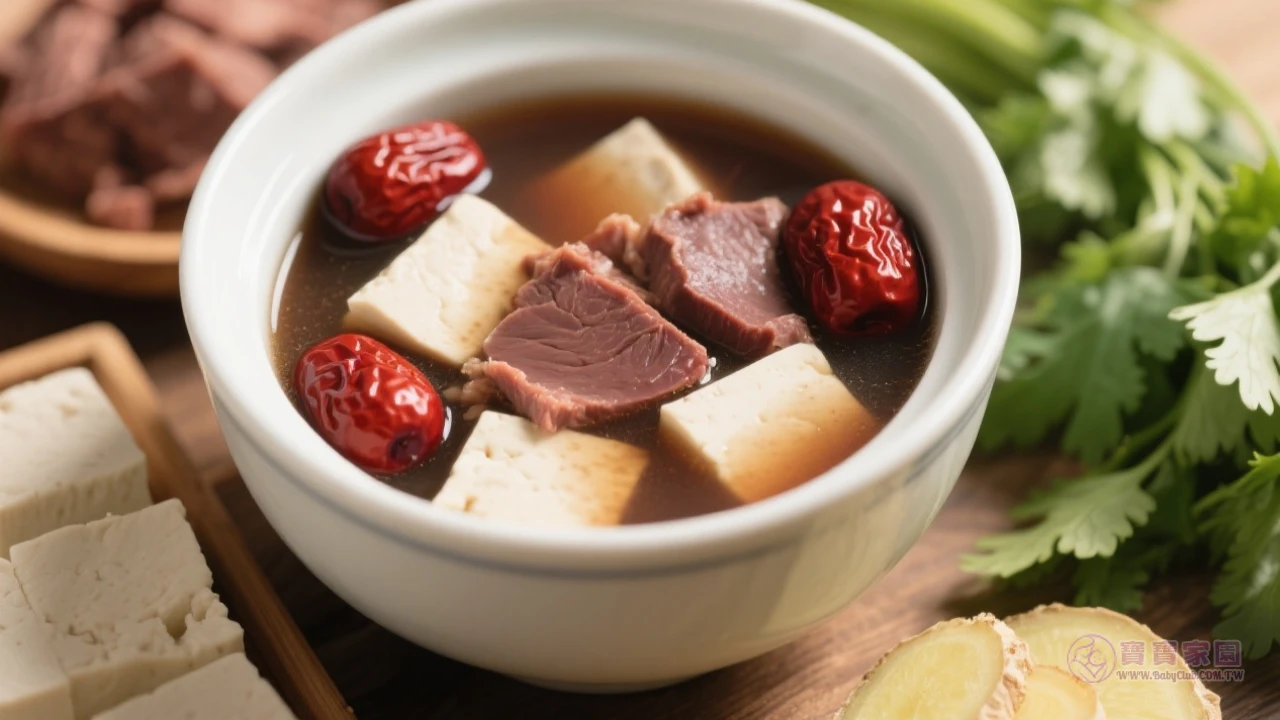6. 補鐵雙色湯 豆腐200克與豬血塊250克,加入10顆紅棗滾煮。 ⚡️營養重點:高鐵組合幫助血紅素快速回升。
