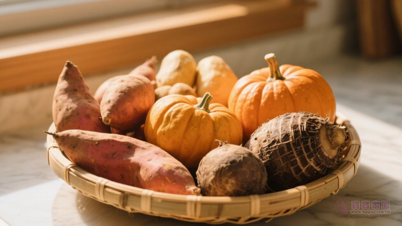 - 攝取根莖類蔬菜:南瓜、馬鈴薯、地瓜等根莖類纖維豐富,若擔心寶寶脹氣,可選擇午晚餐時段食用,並觀察寶寶反應