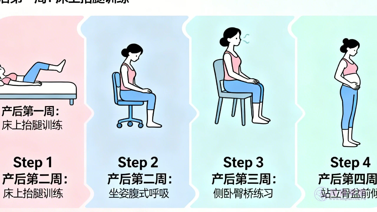 第二天起逐步增加: ✅ 骨盆底肌訓練(凱格爾運動) ✅ 仰臥抬腿運動 ✅ 舒展放鬆姿勢